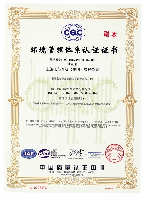 上海長征泵閥(集團)有限公司引進了先進數控機床、加工中心、大型立車、臥式鏜床、國家B等級水泵廠家測試中心、國內一流離心泵生產設備。以下是公司部份資質,點擊可放大查看。