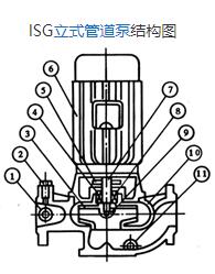 立式管道離心泵結構說明 1、泵與電機同端蓋,軸向尺寸縮短,結構簡單 2、泵體上設有取壓孔和放水孔 3、泵體上設有排氣閥,工作前能排放泵內空氣 4、泵的底部設有安裝底閥和螺栓孔,可以保證整體機組安裝穩固 |